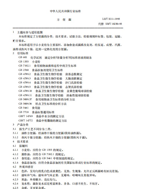 方便面-方便面行業標準LST3211-199