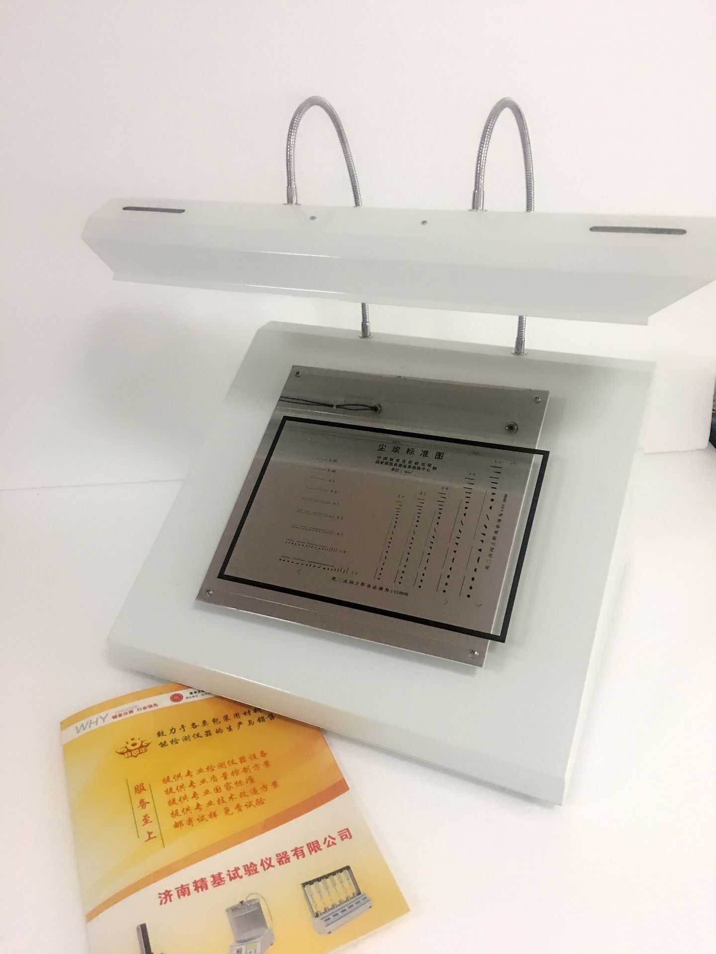 2、觀察:將其中一張試樣放在可旋轉工作臺上。打開日光燈,并在日光燈下檢查試樣面上肉眼可見塵埃。觀察時眼睛的視距保持為250~300mm,用不同的標記圈出不同面積的塵埃;也可采用按不同面積的大小,分別記錄同一面積的塵埃個數。