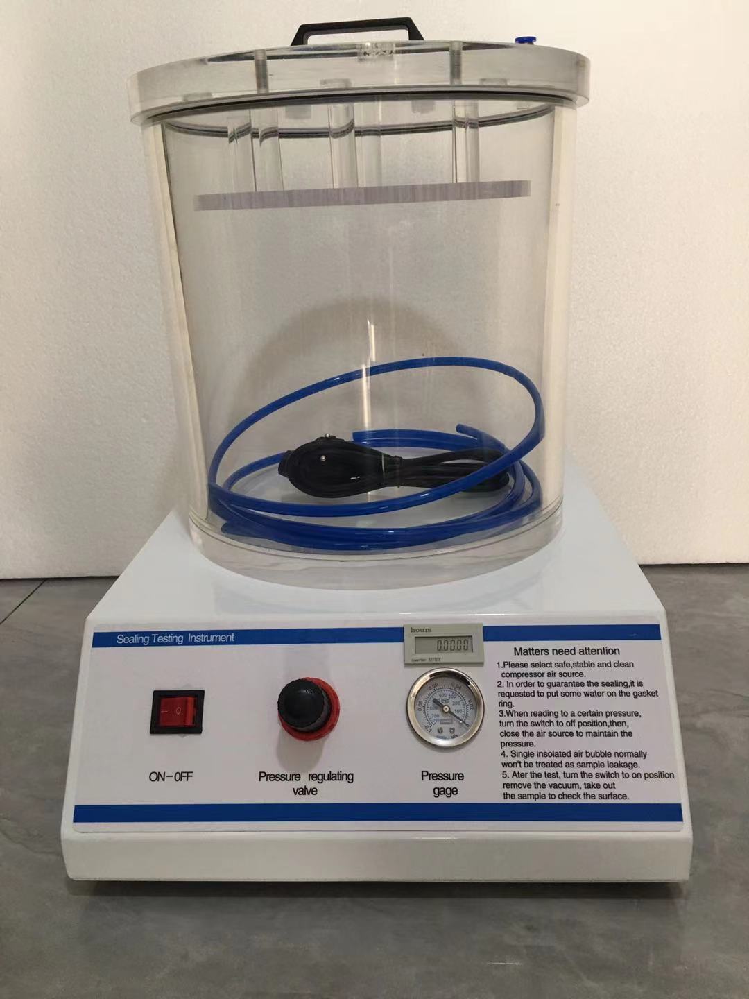 奶茶包裝密封性檢測儀標準配置:主機+實驗密封桶+氣源線