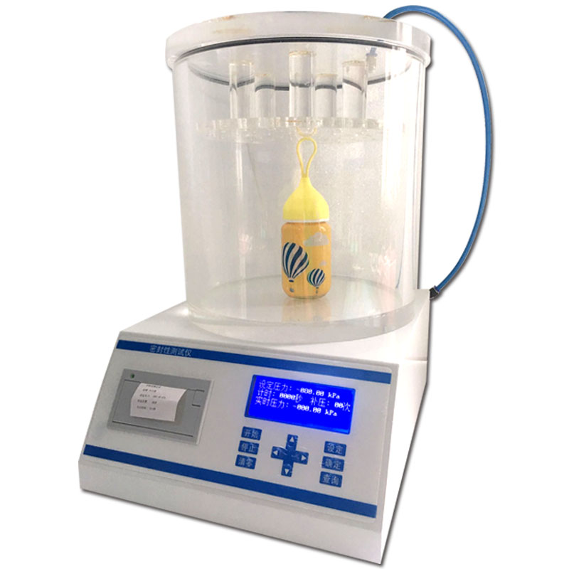 智能密封試驗儀通過對真空室抽真空,使浸在水中的試樣產生內外壓差,觀測試樣內氣體外逸情況,以此判定試樣的密封性能;通過對真空室抽真空,使試樣產生內外壓差,觀測試樣膨脹及釋放真空后試樣形狀恢復情況,以此判定試樣的密封性能。