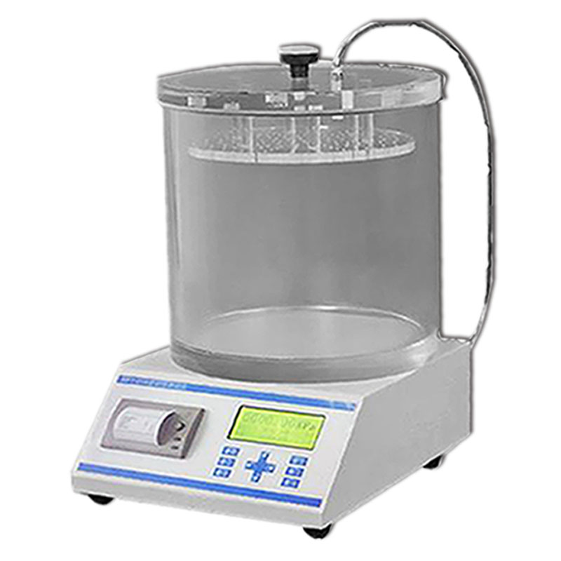 1.打開儀器包裝 ,將有機玻璃筒放在主機旁或者主機上。向筒內注入一定量的清水,高度至壓板面以上20mm左右(但加入試驗樣品后不能讓水被吸出)。 蓋好有機玻璃筒的密封蓋,為保證密封效果,向密封圈上灑少許水。并將玻璃筒的上端降壓閥關閉。